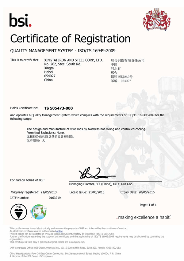 ISO/TS 16949:2009認(rèn)證證書(國(guó)際汽車行業(yè)質(zhì)量管理體系認(rèn)證)