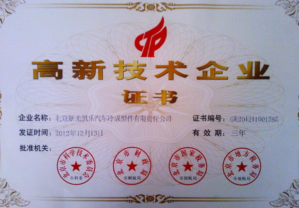 - 新光凱樂榮獲北京中關(guān)村2013高成長性高新技術(shù)企業(yè)百強榮譽