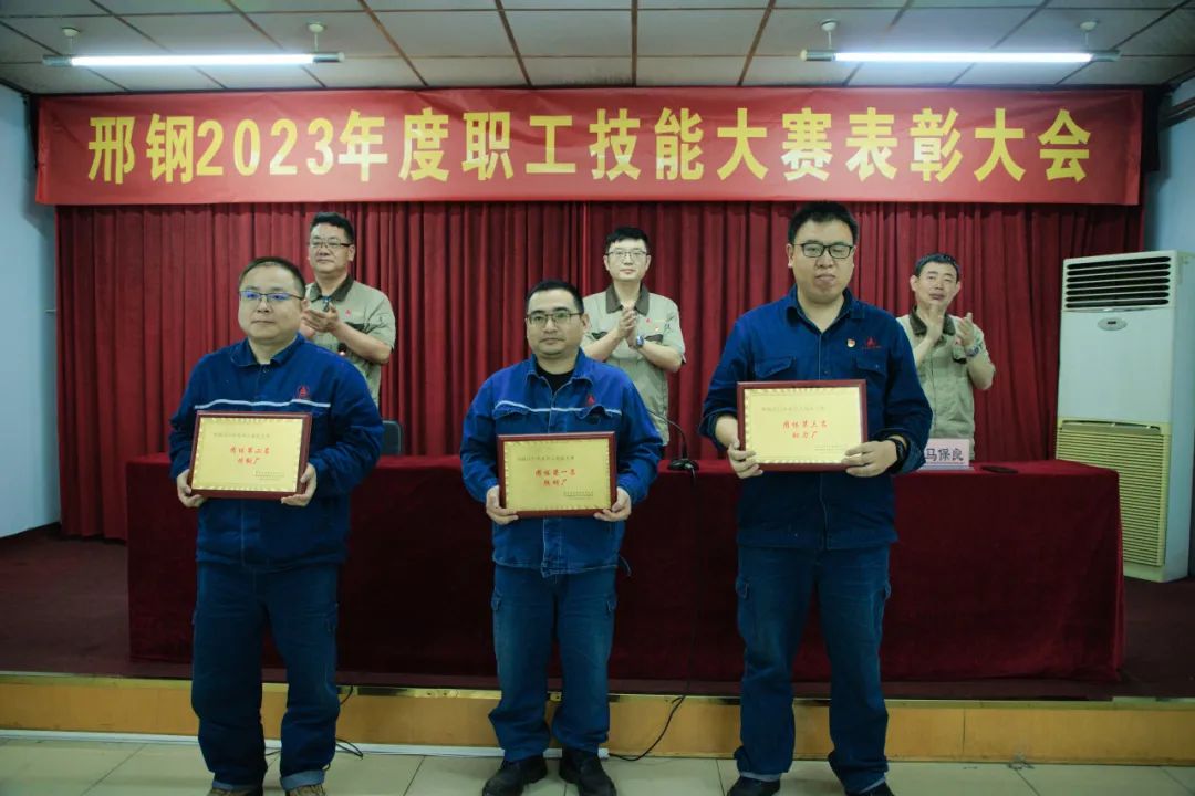 近日,邢臺鋼鐵有限責任公司在線材廠召開“2023年度職工技能比武大賽表彰會”,對取得優(yōu)異成績、表現(xiàn)突出的先進個人和集體進行表彰。公司總經(jīng)理彭世丹、副總經(jīng)理馬保良、韓清連為獲獎選手頒發(fā)榮譽證書并致賀。