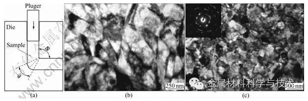 在金屬的成形過程中將超大塑性應變應用于一定體積的金屬中以獲得超細晶材料的過程,其本質(zhì)是細晶強化。通過大的塑性變形使材料的位錯密度增加,形成位錯壁,將位錯壁轉(zhuǎn)化為大角度晶界,從而獲得超細晶組織以及控制形成不同的織構。該技術已經(jīng)在制備各種超細晶材料領域獲得了廣泛的應用。