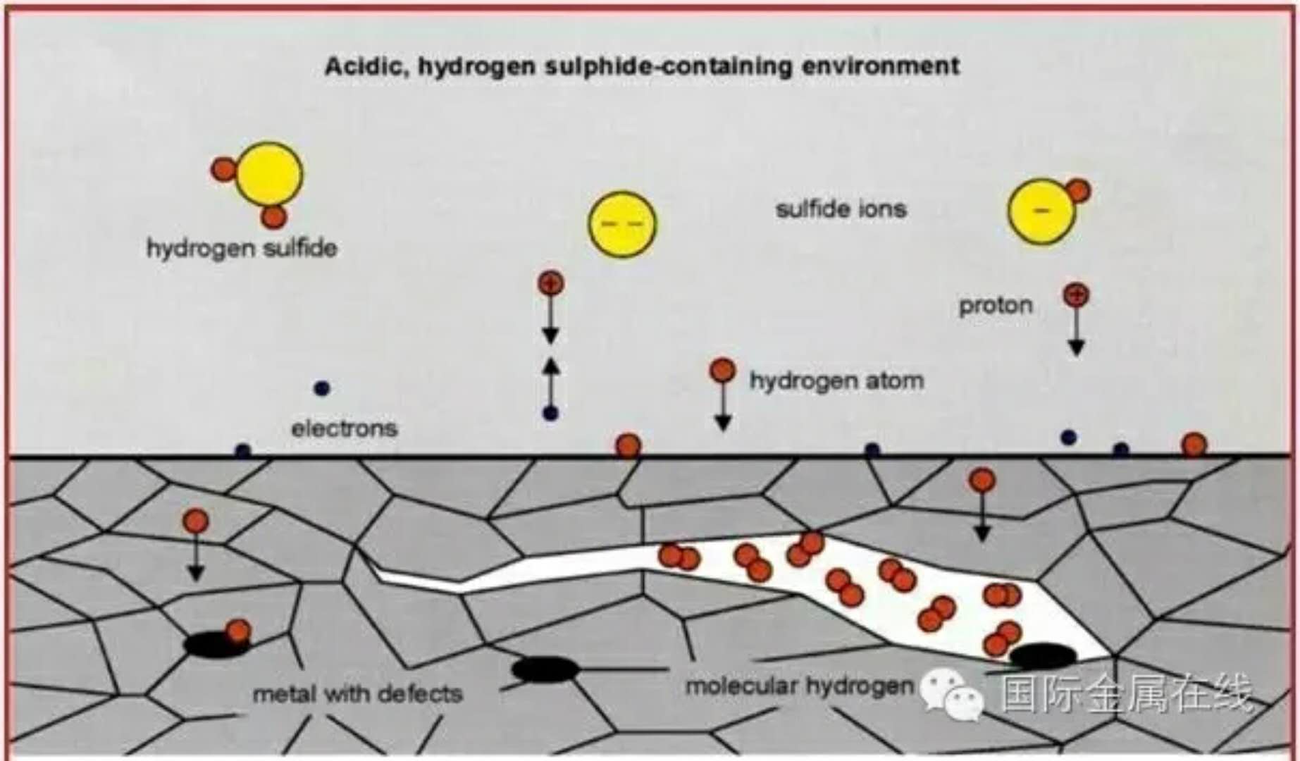 如鋼在含氫量較高的環(huán)境中,如水、酸、氫氣中時,氫通過吸附在鋼鐵表而擴(kuò)散,造成鋼變脆。同時氫分壓對氫裂紋擴(kuò)展速度有明顯的影響,提高氫氣壓力會增加氫脆敏感性。