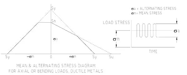 知道一部分將受到波動負載需要設(shè)計師設(shè)計的部分,為該條件。使用已知的極限拉伸應(yīng)力和屈服應(yīng)力(金屬首先開始永久變形的應(yīng)力,約80~90%的拉伸應(yīng)力),設(shè)計者構(gòu)造一個應(yīng)力限制包絡(luò),如圖2所示。然后設(shè)計該部件以使施加到其上的循環(huán)載荷為控制在包絡(luò)內(nèi)的應(yīng)力。