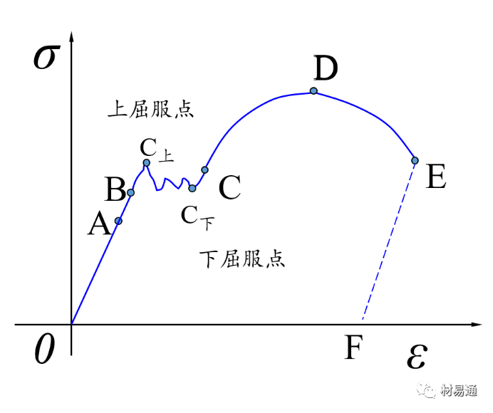 上屈服強度:試樣發(fā)生屈服而力首次下降前的最高應(yīng)力。