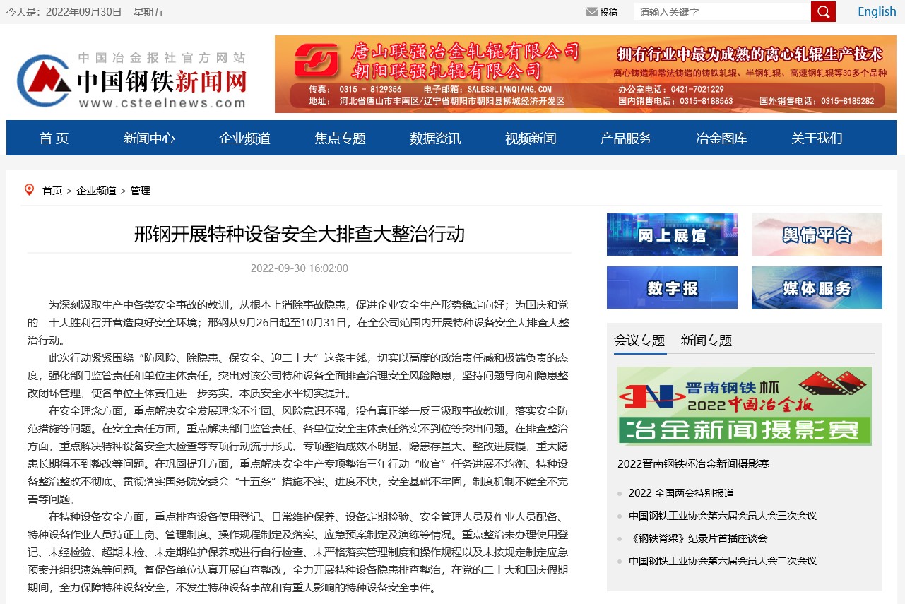 為深刻汲取生產(chǎn)中各類安全事故的教訓(xùn),從根本上消除事故隱患,促進(jìn)企業(yè)安全生產(chǎn)形勢穩(wěn)定向好;為國慶和黨的二十大勝利召開營造良好安全環(huán)境;邢鋼從9月26日起至10月31日,在全公司范圍內(nèi)開展特種設(shè)備安全大排查大整治行動(dòng)。
