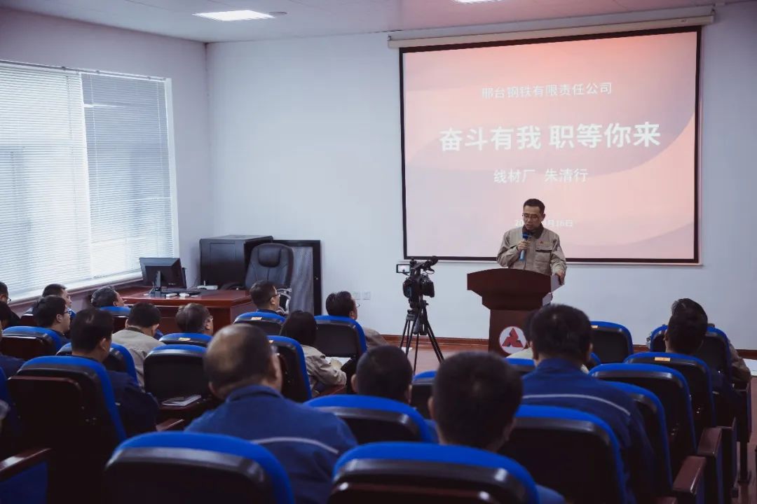 為加強(qiáng)員工隊(duì)伍建設(shè),提供人才晉升渠道,實(shí)施動(dòng)態(tài)儲(chǔ)備,4月16日,邢鋼組織開(kāi)展了“奮斗有我,職等你來(lái)”主題演講會(huì),倡議廣大青年員工立足崗位比奉獻(xiàn),積極為公司發(fā)展諫言獻(xiàn)策,并激勵(lì)他們錘煉品德、勇于創(chuàng)新、實(shí)學(xué)實(shí)干,和公司一起成長(zhǎng),成為邢鋼事業(yè)發(fā)展的中堅(jiān)力量。公司董事長(zhǎng)兼黨委書(shū)記張育明等公司領(lǐng)導(dǎo)及各單位主管領(lǐng)導(dǎo)參與了本次活動(dòng)。